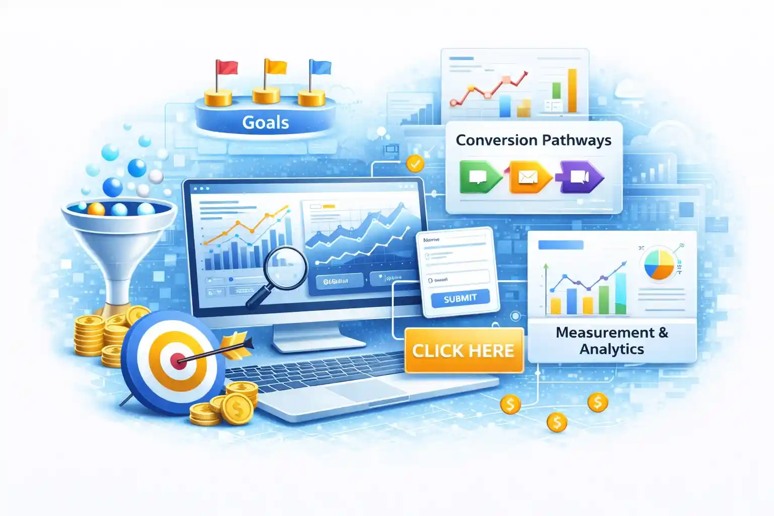 This stage includes analytics alignment, goal tracking, conversion pathway review, CTA clarity, and reporting logic that helps connect SEO activity with business outcomes.